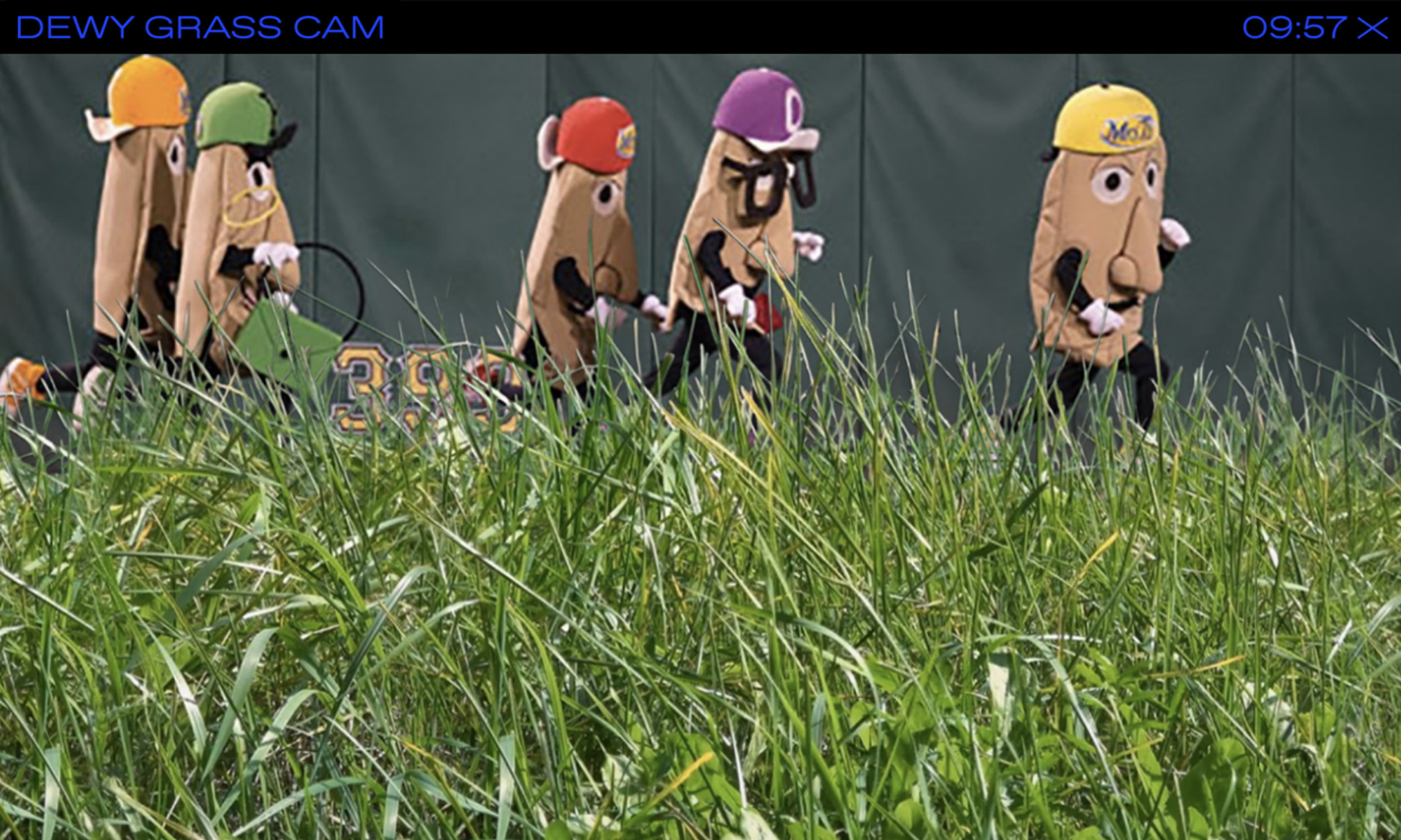 The DGC site includes interactive icons which can be grabbed and tossed like balls, one of which reveals a hidden “Dewy Grass Cam.”
